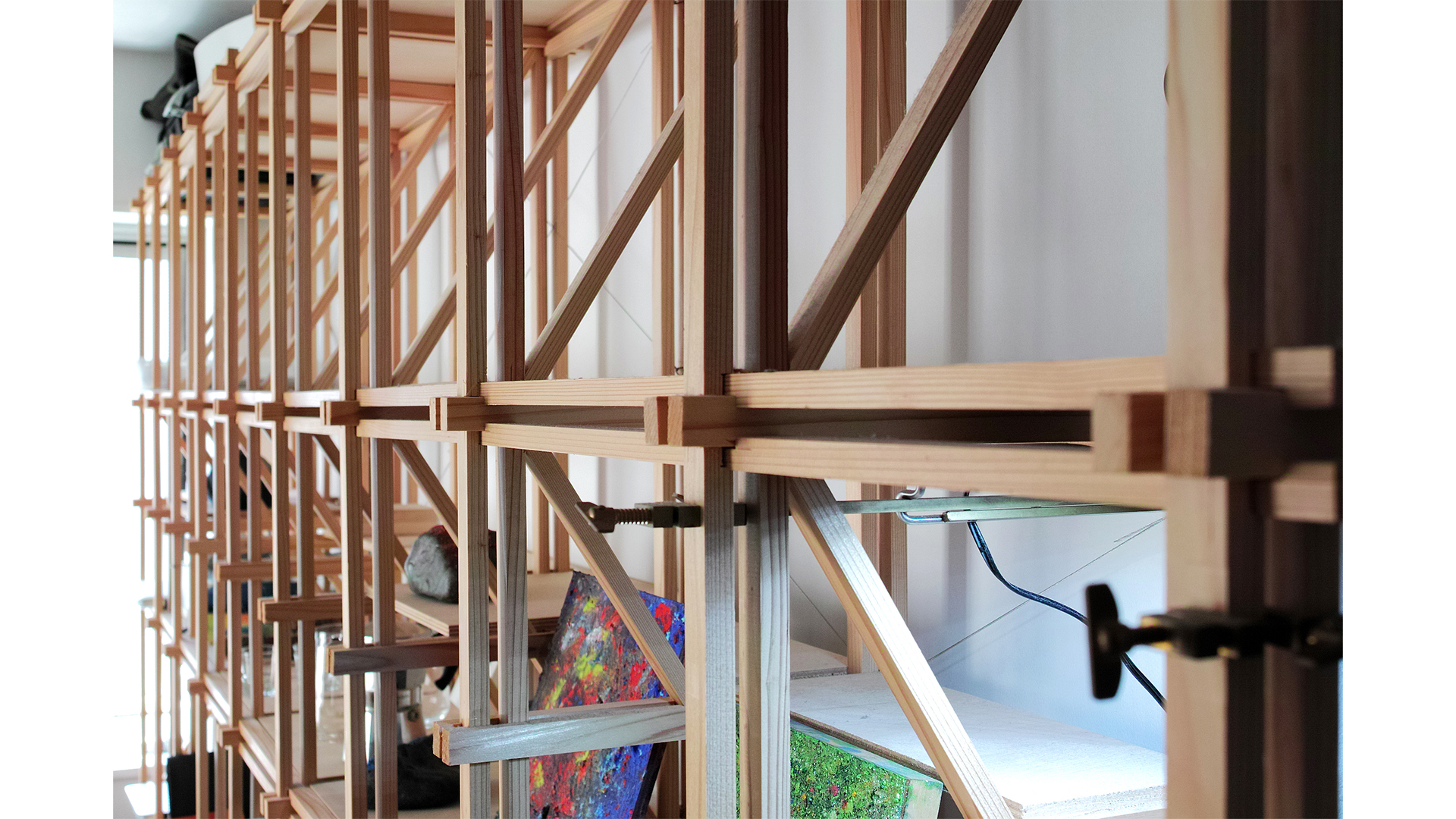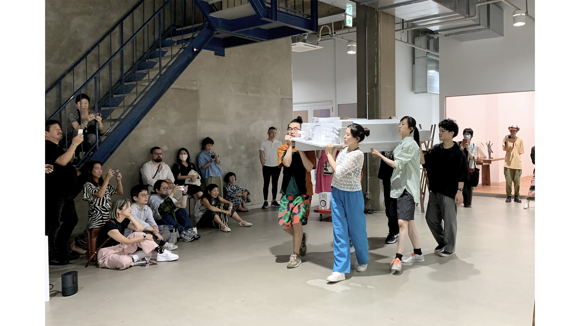 アメリカを拠点として活動するアーティストである荒川ナッシュ医氏によるパフォーマンスアートのための建築模型です。 担げる・人が乗れる・光るという、模型以上建築未満の舞台装置となりました。 この模型を使用したパフォーマンスは、荒川ナッシュ氏の東京での展覧会(会期:2023年7月4日–29日、会場: タカ・イシイギャラリー ビューイングルーム)のオープニング及びクロージングに際して行われました。 作家のウェブサイト上にてパフォーマンスの様子が公開されています。